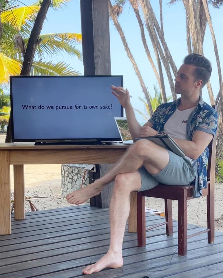 Giving a talk on flourishing on Placencia Beach, Belize, 2021